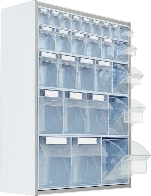 - Cajas basculantes transparentes equipadas con espacio para tarjeta identificativa